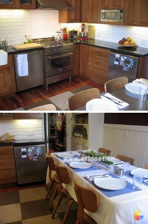 在如此狭长的空间中,厨房餐厅在同一区域中,合理的设计不会给人局促的感觉,满足了主人招待朋友的爱好。