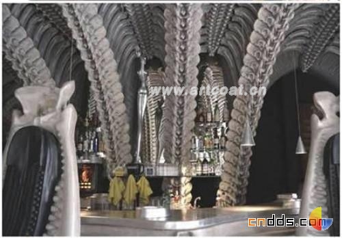 这个酒吧很像是外星人开的,酒吧的设计者HaRudiGiger曾在多部外星人体裁电影中参与设计,曾获过包括奥斯卡最佳特效奖在内的多项大奖。该酒吧设计相当成功,走进酒吧,你会发觉来到了一个外星世界,或是身处巨型怪兽的骨架内。
