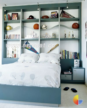 如果孩子的房间不是很大,而你又希望给孩子一个阅读空间,那不如就把书架设在床头吧,让孩子每天伴着书香入睡。