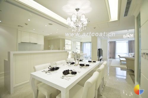 由于业主喜欢欧式新古典风格,设计师特以白色来诠释新古典,开创了清新雅緻的纯净风貌。而除了色彩的高难度展现,在空间佈局规划上也显深思熟虑。公共空间採大量开放式无隔间的型态,私密空间则以属性区分作隔间;于外展现阔绰大器,于内细腻熨贴生活。