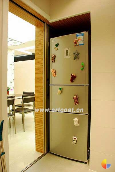 开始还在考虑这么小的地方能放什么?不过现在看来冰箱放进去恰恰合适!