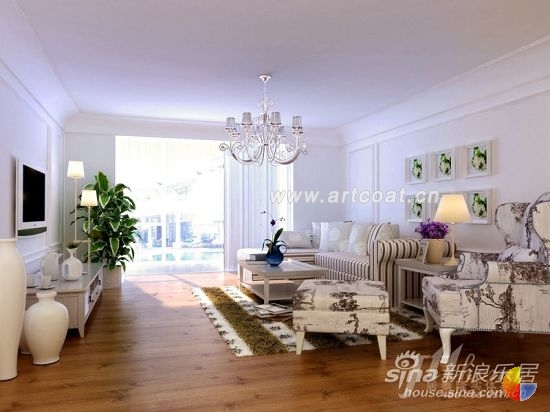 整套方案的装修特点,清雅浪漫的白色布满整个空间,在不同的图形与色彩中变换,宽大的顶角线和概括的欧式风情演绎着异域的浪漫和情怀,温润的柚木地板带来了家的闲适和温暖。