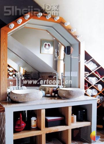 卫生间不同的石凿池盆,最美的就是主卫中两个嵌在圆石中的瓷盆,犹如两块半包在皮子中的润玉,令人爱不释手,不禁感叹:“这怎会是路边淘来的便宜,放到任何一个高档卫浴店都会价值不菲。”五公里半径的距离对于一个城市来说真小,只是有时,审美与价值观念上的距离却真大。