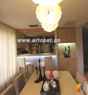 本身空间不大所以缩小了吧台的编辑,但与周围环境的相搭还是很舒服。