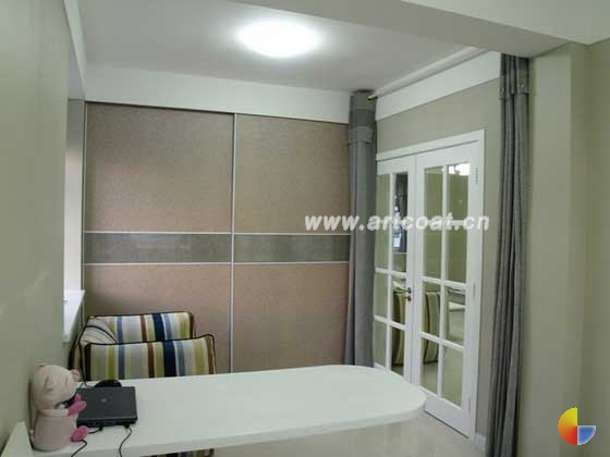 主卧室衣柜移门:6平方,普通清玻璃,贴了壁纸,两卷没用上