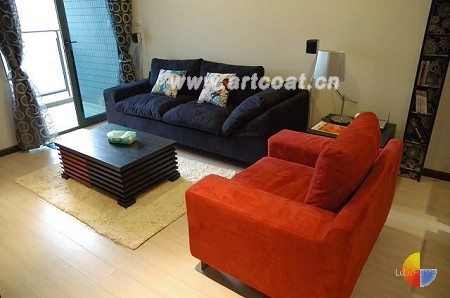 沙发为了和整体风格搭,特意配的红色和黑色。