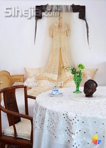 环保怀旧的态度,麻制的本色窗帘、皮毛的地毯、杏仁色的老皮箱、老扶梯做成的床栏。那种高雅,却并不让人难以启及。也许是这些旧物,让人依恋,使人熟悉,还能遥记起童年里那清澈到透明的亲昵。也许是那样的磁场总让人有记忆可循,触动心底,让人在外部纷扰的世界里找出属于自己的那份真实与笃定。