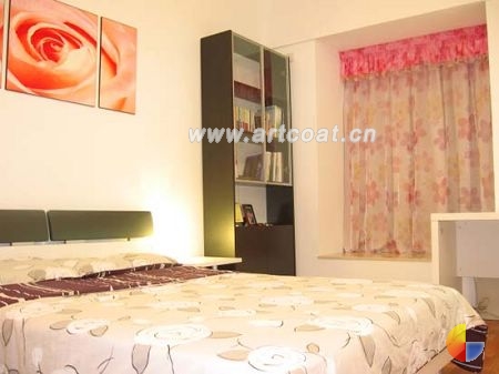 卧室:简单时尚的书柜与无框装饰画,很漂亮,但整体显得风格显得有些不搭,飘窗可以很好的利用当做休息区或者摆放些装饰物。