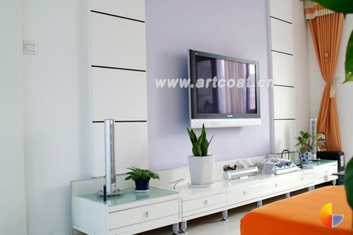 简约的紫白色电视墙。