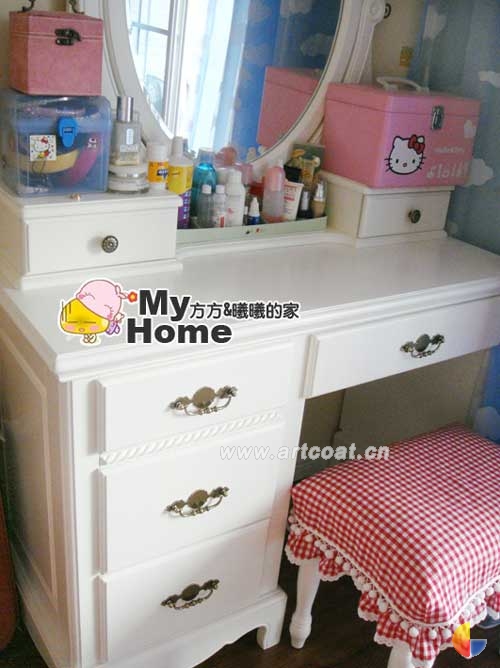 梳妆台没地方放。所以也先放宝宝房了,额~买的时候觉得都好看。买了又占地方。