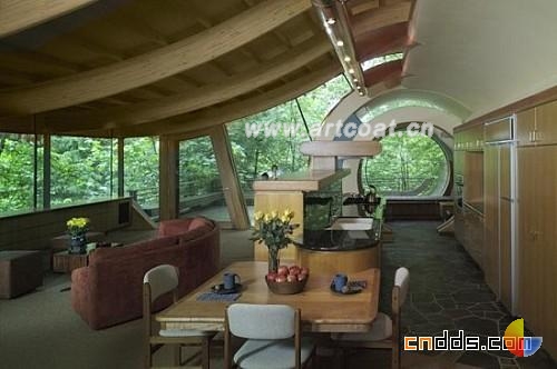 在美国俄勒冈州波特兰市建造的一座树林木屋以其独特的设计和与外界环境的完美融合,越来越受到建筑爱好者的关注。这座房子建在一个陡峭的斜坡上,屋檐紧贴树枝,让人每天早上都可以沐浴在树林的清新空气中品味香浓的咖啡。这座房子最大的特点就是对曲线的运用。