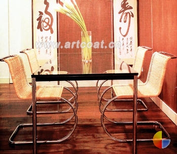 中国字画与西方代表作MR椅形成极有反差又极有文化品位的就餐空间,以简胜繁的处理给人以自然的领悟。