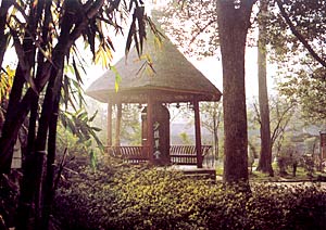绕过“工部祠”后侧的假山,便到了解放后扩建的园亭。这里有水池、荷花、玉兰、海棠、月桂、山茶等,名花贵木,枝叶繁茂,水波潋滟,台、亭、水榭点缀其间,景色十分优美,颇有江南园林的风韵.