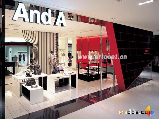 最近,‘anda’在日本开幕了。它是一家服装店。momentdesign为其做了室内部分的设计,室内使用的配色方案是红色和黑色,这在他们的设计中是一个最重要的元素。  店内分为三个主题区,分别为‘未来’,‘过去’和‘现在’,每个区的颜色编码关联相关的主题。这一概念导致‘混合文化‘,这是‘anda’的特征之一。
