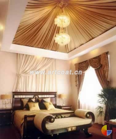 卧室用布艺软包的方式吊顶,是整个房间最有特色的地方。再配以高贵典雅的水晶吊灯,将整个房间的贵族气质显现得淋漓尽至。