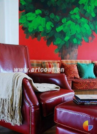 典型的红绿两色设计,让整个客厅都鲜活起来。    .