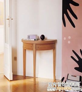 一面可大可小的镜子可供整理妆容。如果放几本书,丈夫等待出门前作最后准备的妻子时,就可以顺手翻翻,消磨那段说不好是长是短的时间。而几枝花草、几件新颖活泼的小摆设,使得整个空间转瞬间灵动起来。