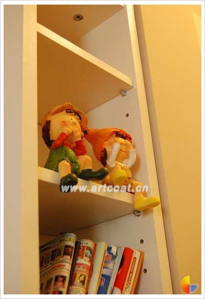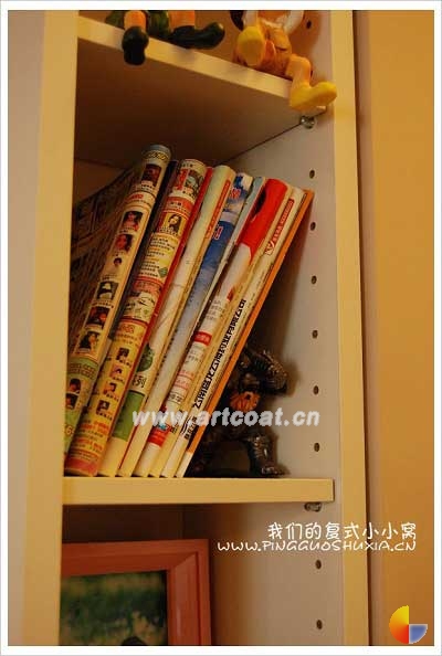 我们大大的书桌。因为我们都是做设计的,生命中不能没有电脑。所以做了这么长的一个大桌子。脸红的是我们的书还不够多哦,搬家搬一次扔一次,只剩下极品了。外面是他的位置,我的位置在里面。家里安装了无线路由器。有时候我会抱着笔记本在楼下边看电视边上网。