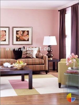 粉色给人的感觉是太粉嫩,不容易搭配。其实深棕色的家具可以很好的融入其中,不过家具的线条一定要简洁,否则会让客厅显得太过于复杂。