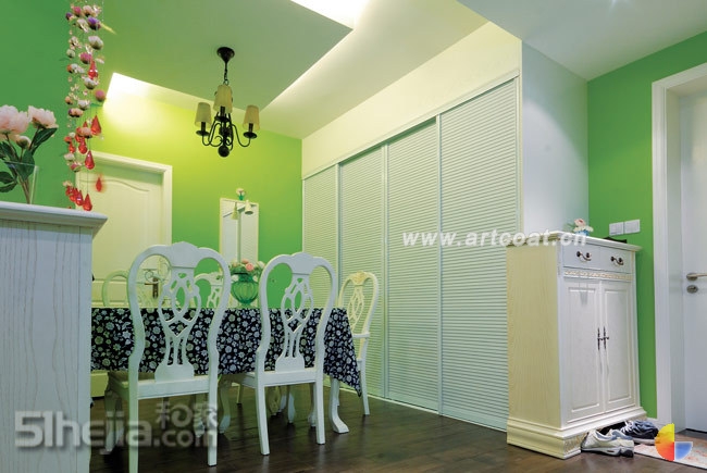 绿色背景墙与简单的欧式翘角套具,很清新的田园风。    .