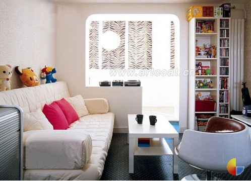 编辑点评:在小户型中,为了照顾面积,有时候会考虑自己订做白色的沙发。而垂直的帘曼与窗帘,就是这白色沙发的两个翅膀了。