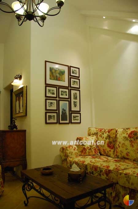 沙发边的照片墙,选了很多我们两人小时候的照片,装照片的那天晚上,是我们两个第一次在工作室里并肩坐着,身后的留声机放着蔡琴的歌,我们一张张交换着把对方小时候的模样儿装进相框,心理暖融融的,结婚那天,很多亲朋都驻足在这面墙壁前,我想,我们把这种暖融也带给了他们吧。