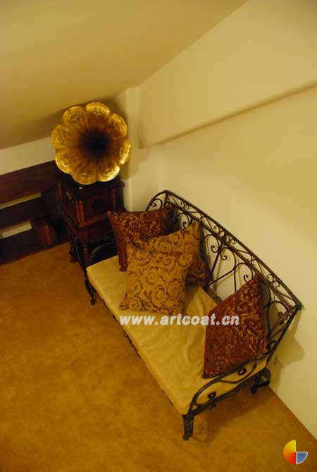 铁艺沙发椅也是购于淘宝,800多块,不算贵,但却是网购中最遗憾的一件家具,虽然用料还都可以,但是形状和初始的约定有了很大的出入,卖家夫妻倒是客气有礼,在制作中途就发来图片,看到一些不可逆转的地方如若不是赶婚期是断不会收货的,只是时间紧,不得不将就了下来。本来扶手的弧度更高,椅背的弧度也更欧式,用料并没有因为造型的改变减了多少,但却直接影响到了视觉效果。无法无法。