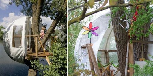 树屋是休闲、阅读、沉思或与家人一同玩乐的非常好的地方。它可以设置在你的花园或你的后院中,在这里你可以看到住宅周围的树林,山脉或者沙滩的美景。这是一个环保型的树屋,由BuleTree公司设计建造。建造所用的材料并不会影响树的自然生长。它可以提供一个时尚的生活环境,对那些自然热爱者和喜欢捕获奇异物种的人们非常具有吸引力。这个BuleTree住宅有6平方米可以容纳8个人。这种气泡式的设计可以允许人们在树上睡觉,精心并同自然亲近。