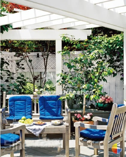 如果面积允许,为何不把室内享受的功能全部搬到室外呢? 全面的功能区,给你完美户外生活体验!篱笆和藤架为植物提供了攀爬空间,更是营造出私密氛围。花槽自然地将庭院分隔成三个区域,更是花园中美丽的点缀。
