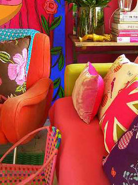 柠檬黄的沙发搭配色泽艳丽的靠垫,宛若一幅美丽的图画