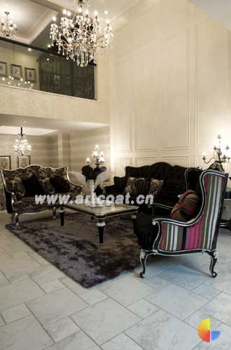 主客厅的华贵的地毯使整个客厅大放异彩,水晶宫灯、精雕细琢的烛台、巴洛克时期油画,透露出主人略带些许成功后的稳重。