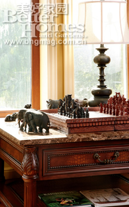 别具一格的游戏室。一家人多年来从世界各地淘来的大小宝贝统统汇聚于此,秩序井然的排列完全成就了一间家庭博物馆的阵势!