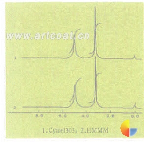 ( 2 ) 试验样品与美国氰胺公司生产的 Cymel303 核磁共振谱比较见图 2 。