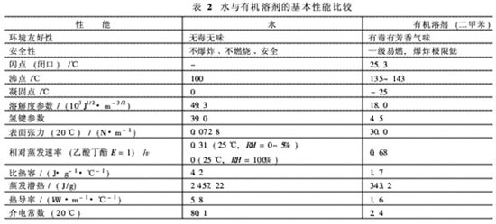 从表2可见,水作为分散介质的优点有:水无毒无味,完全满足环境保护要求;水不爆炸,不燃烧,安全无害;相对于溶剂来说,淡水便宜易得。但以水为分散介质确实存在不利因素。