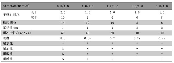表6n(-NCO)/n(-OH)对涂膜性能的影响
